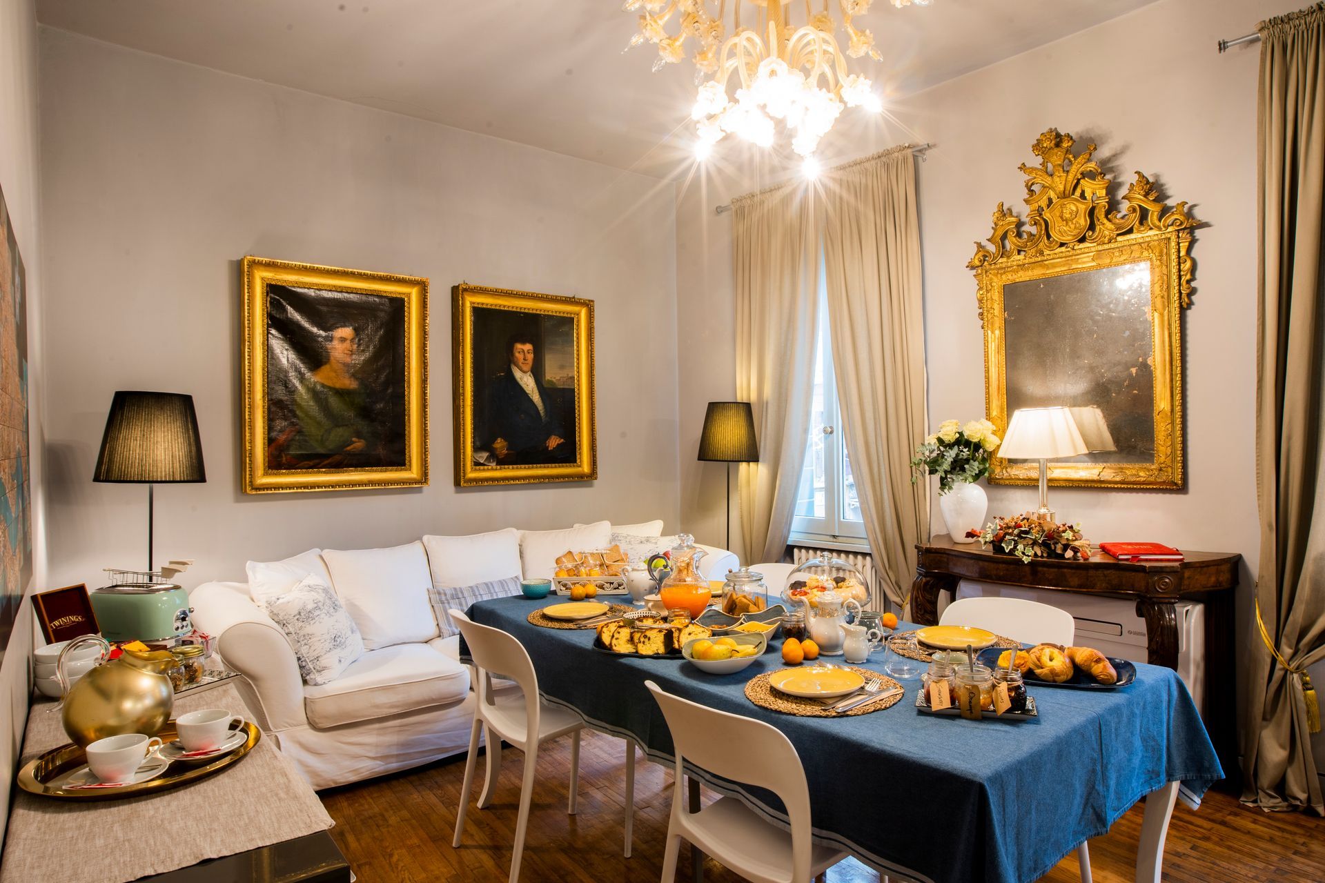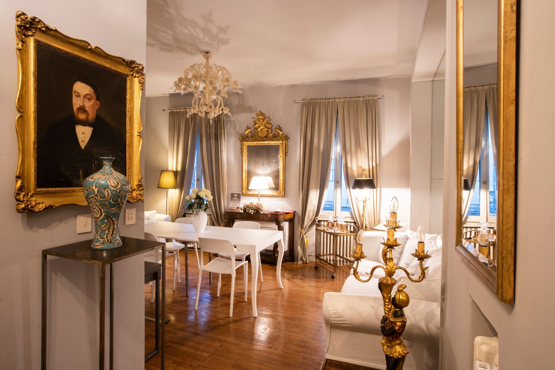 arredamento di inizio Ottocento, con pezzi d’antiquariato e pregiati dipinti, in un connubio che rende unico il design del nostro
